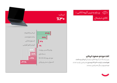 در گروه کالاهای کاربردی، بازدید لپتاپها (۳۰ درصد) و ساعتهای هوشمند (۲۲ درصد) افزایش یافت؛ نشانهای از بازگشت آرام به روال زندگی روزمره.