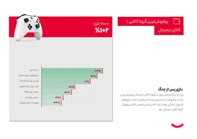 کنسولهای بازی با رشد ۸۵۲ درصدی و پس از آن دستههای بازی (۱۰۲ درصد) و بازیهای کنسول (۹۳ درصد)، صدرنشین فروش در بخش دیجیتال شدند.