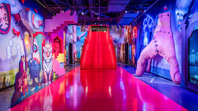 Squid Game, Wednesday و One Piece قدم بگذارند. بازدیدکنندگان از طریق بازیها، جاذبهها، غذا و خردهفروشیهای برند تعامل دارند. هر فروشگاه به مساحت تقریباً صدهزار فوت مربع در فضاهای فروشگاههای بزرگ بازسازی شده مانند King of Prussia در نزدیکی فیلادلفیا و Galleria Dallas افتتاح شده است.
